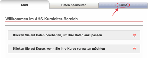 1. Ihr loggt Euch im Kursleiterbereich ein unter: https://userpages.uni-koblenz.de/~ahs/neu/index.php/account/login/kl